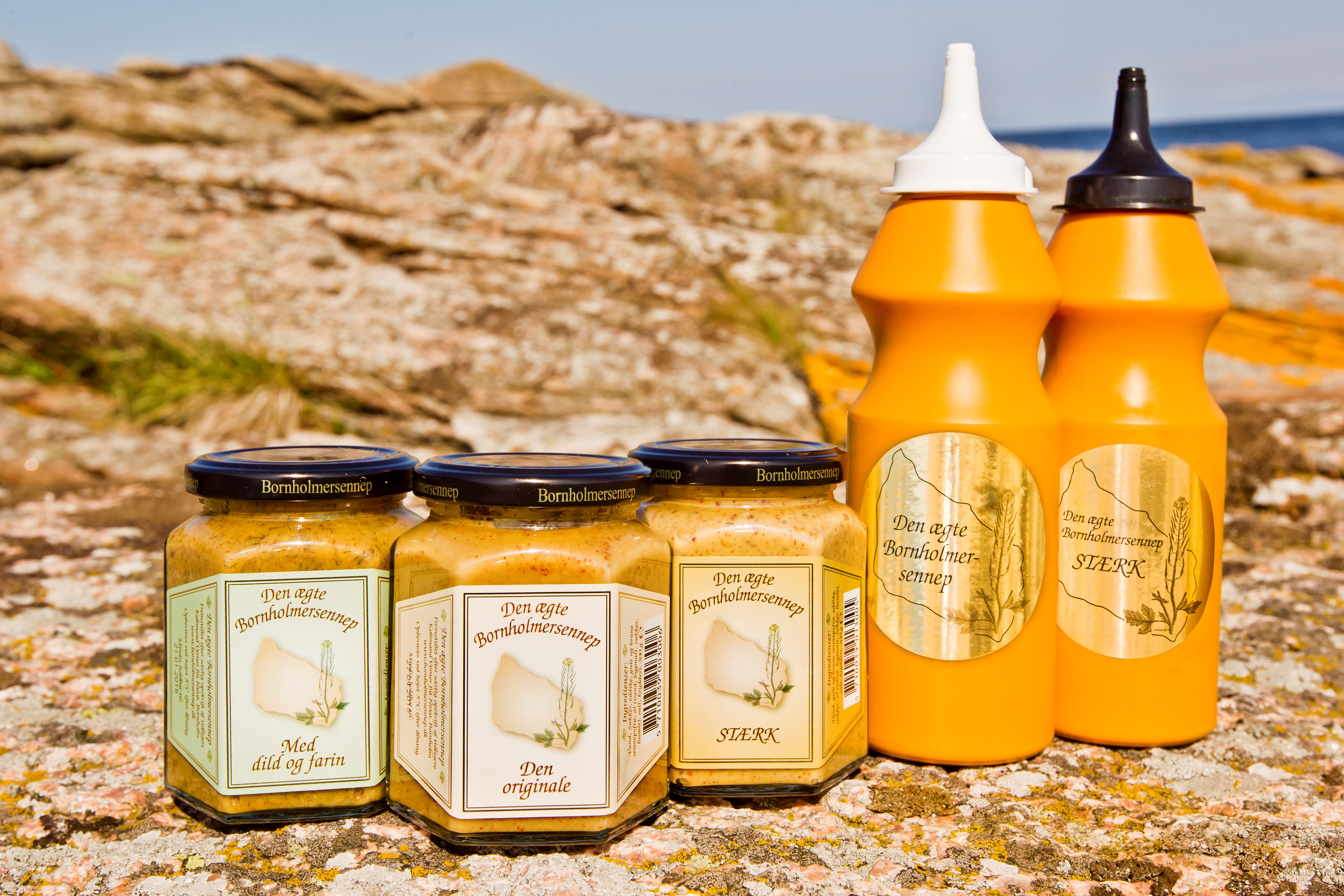 Vi kan dog røbe, at Bornholmersennep bl.a. bliver produceret af vand, sennepsfrø, salt, sukker og en række helt specielle krydderier - resten forbliver en hemmelighed.